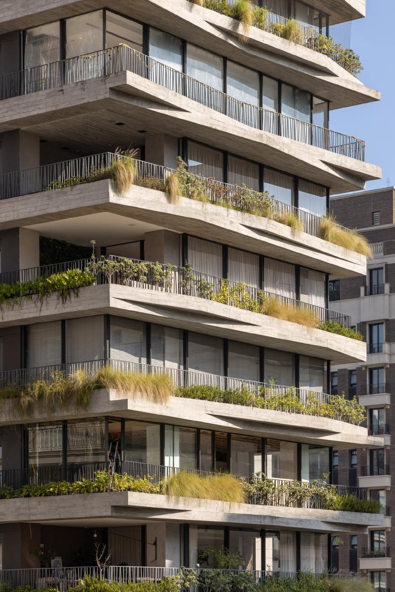 이러한 식생은 열·음향 차단과 프라이버시 확보에 기여하며, 각 세대는 발코니를 통해 공중 정원과 직접 연결된다. 저층부에서는 선형 정원과 가로 조경을 통해 도시와 건물 사이의 완충 공간을 형성한다. Leopoldo 1201은 고밀도 도시에서도 수직적으로 자연을 회복할 수 있음을 보여주는 사례로, 현대 도시 주거의 새로운 가능성을 제시한다.