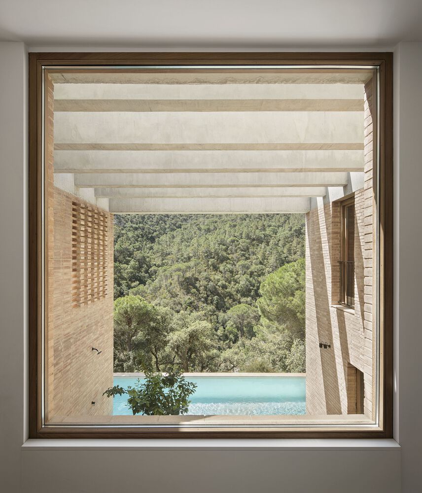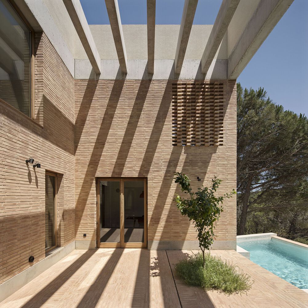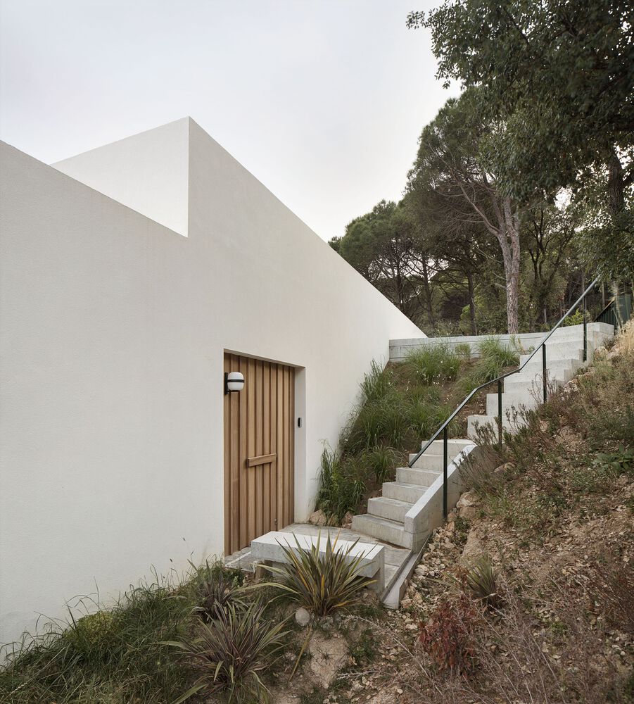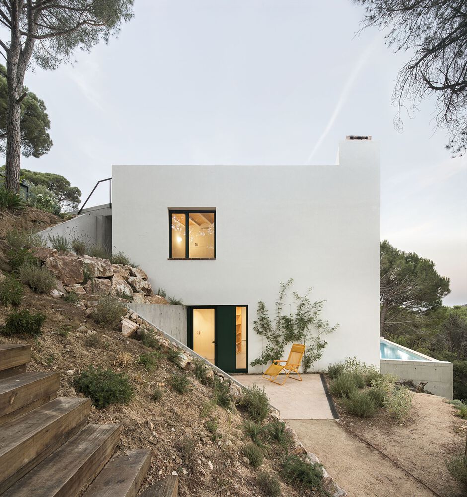 This family house is located at the edge of a suburb in the Baix Emporda, Catalonia, on a steep hill overlooking a forested valley.