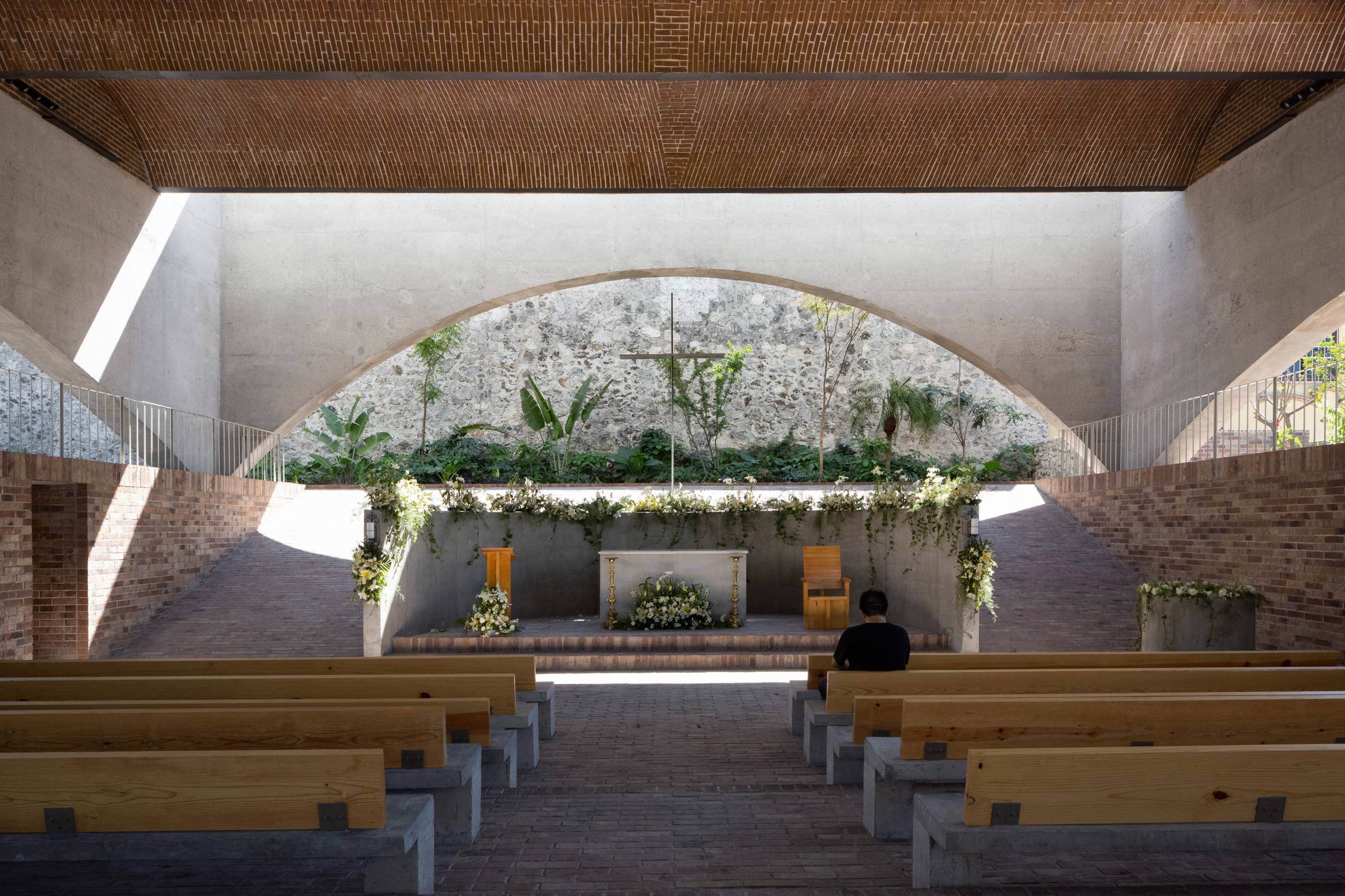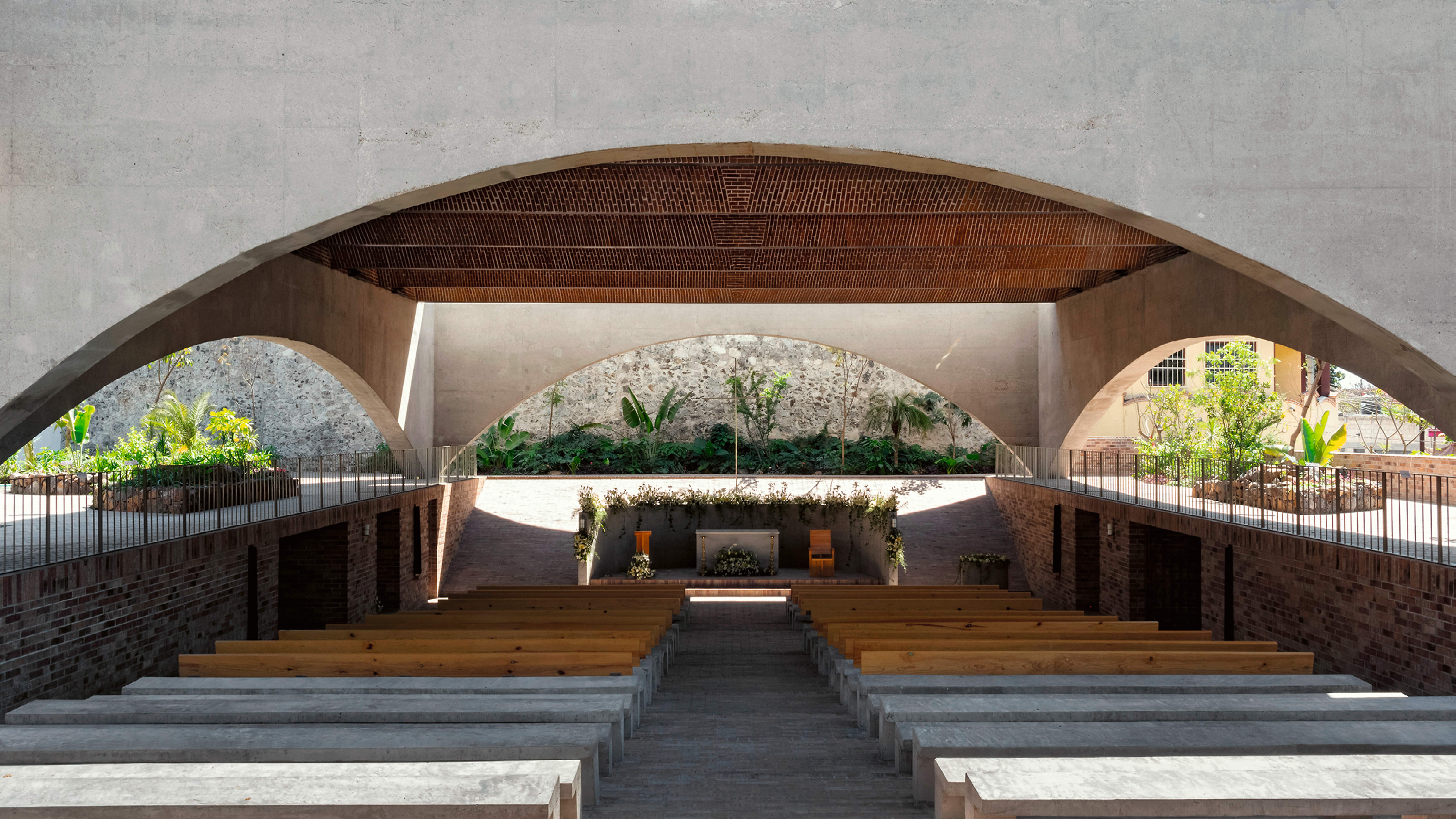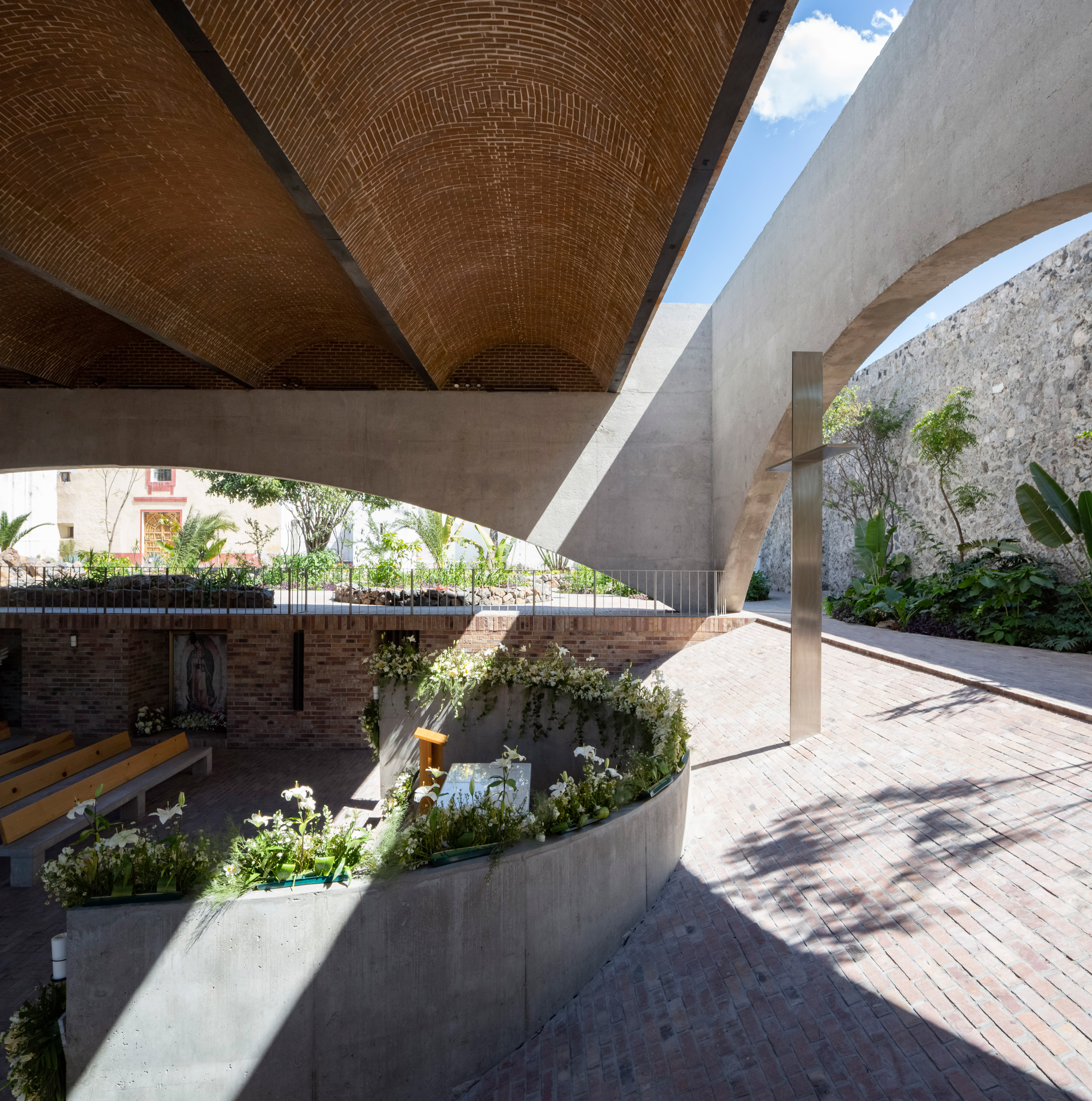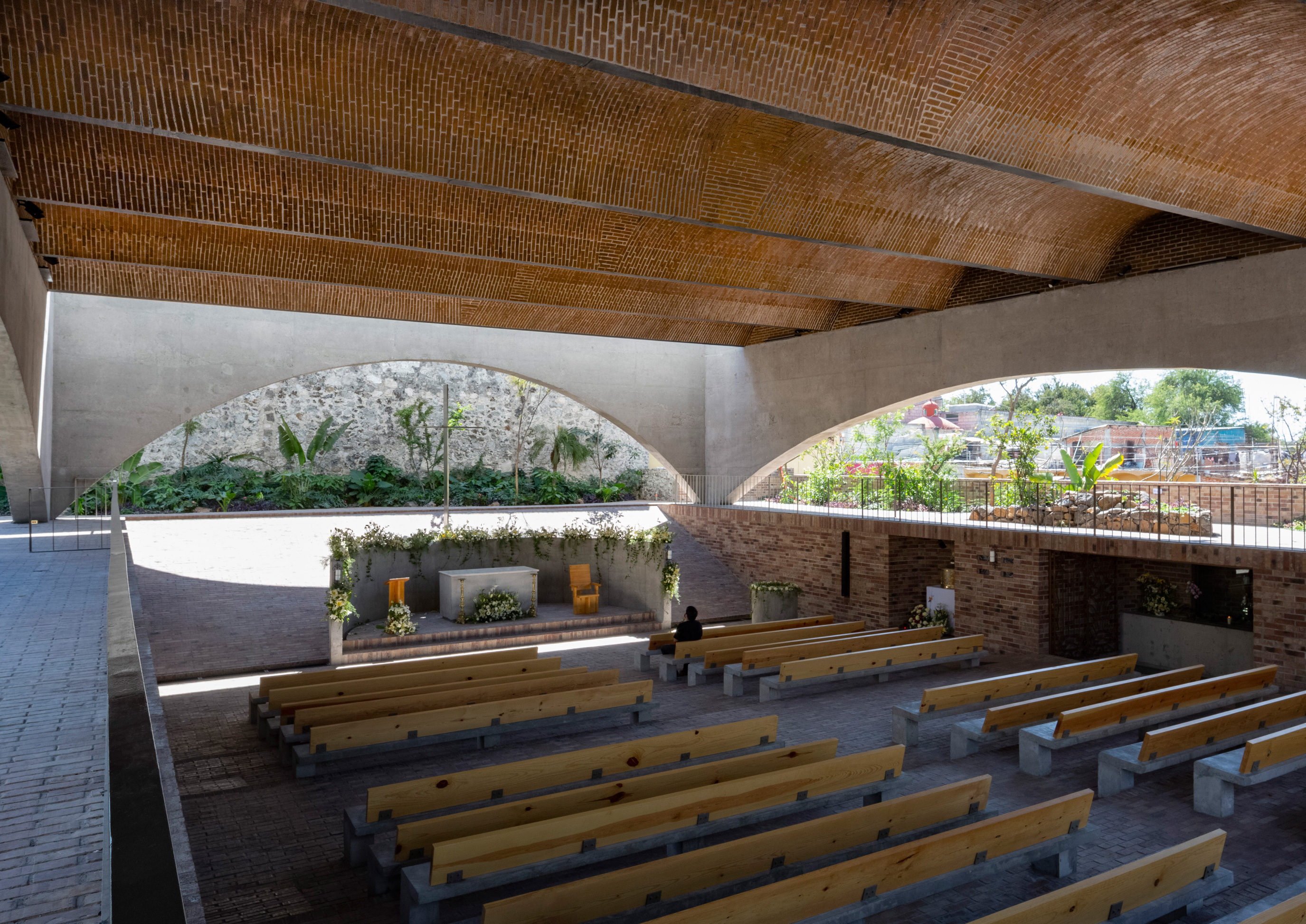 On 19 September 2017, an earthquake jolted the city of Jojutla in the Mexican state of Morelos, destroying over 2,600 homes and leaving nearly all public infrastructures in ruins. The team formed by AGENdA Agencia de Arquitectura | Camilo Restrepo (Colombia) and the practice of Derek Dellakamp and Jachen Schleich (Mexico), with Francisco Eduardo Franco Ramírez, was tasked to rebuild the Señor de Tula Sanctuary, which dates back to more than five centuries ago. With a built area of 450 square meters, the project starts out from a large roof of brick vaults held up by a concrete structure presenting arches at the corners. In this way, air circulates and natural light streams in. Returning to the typology of the open chapel, the terracing of the floor from the atrium to the altar gives privacy without hindering visual contact with the surroundings.