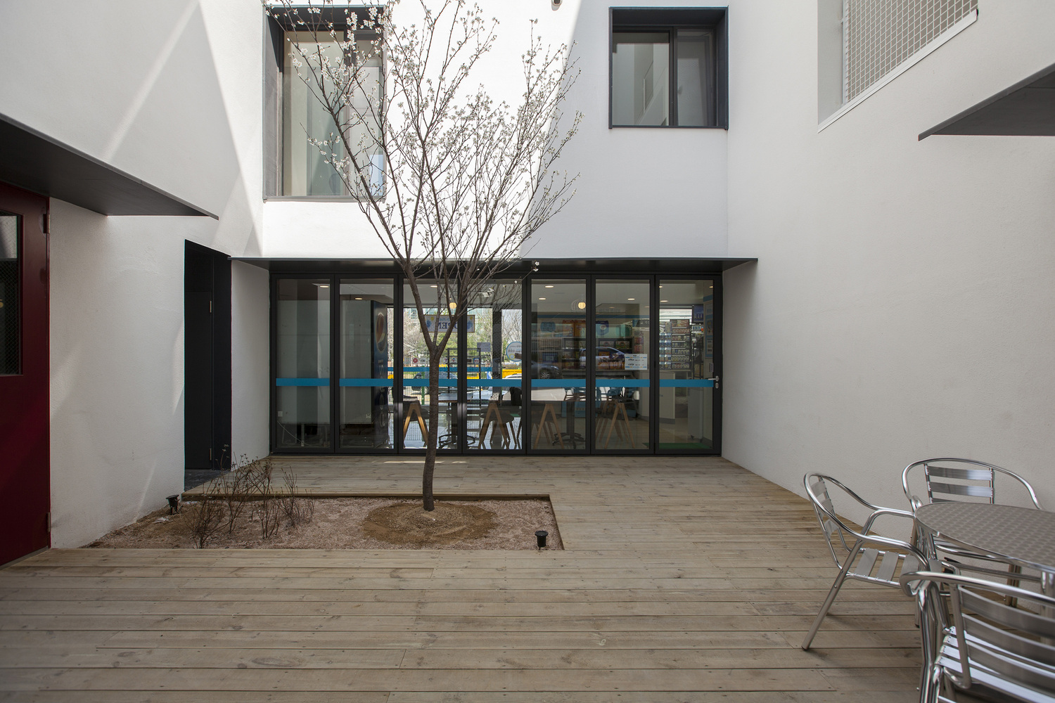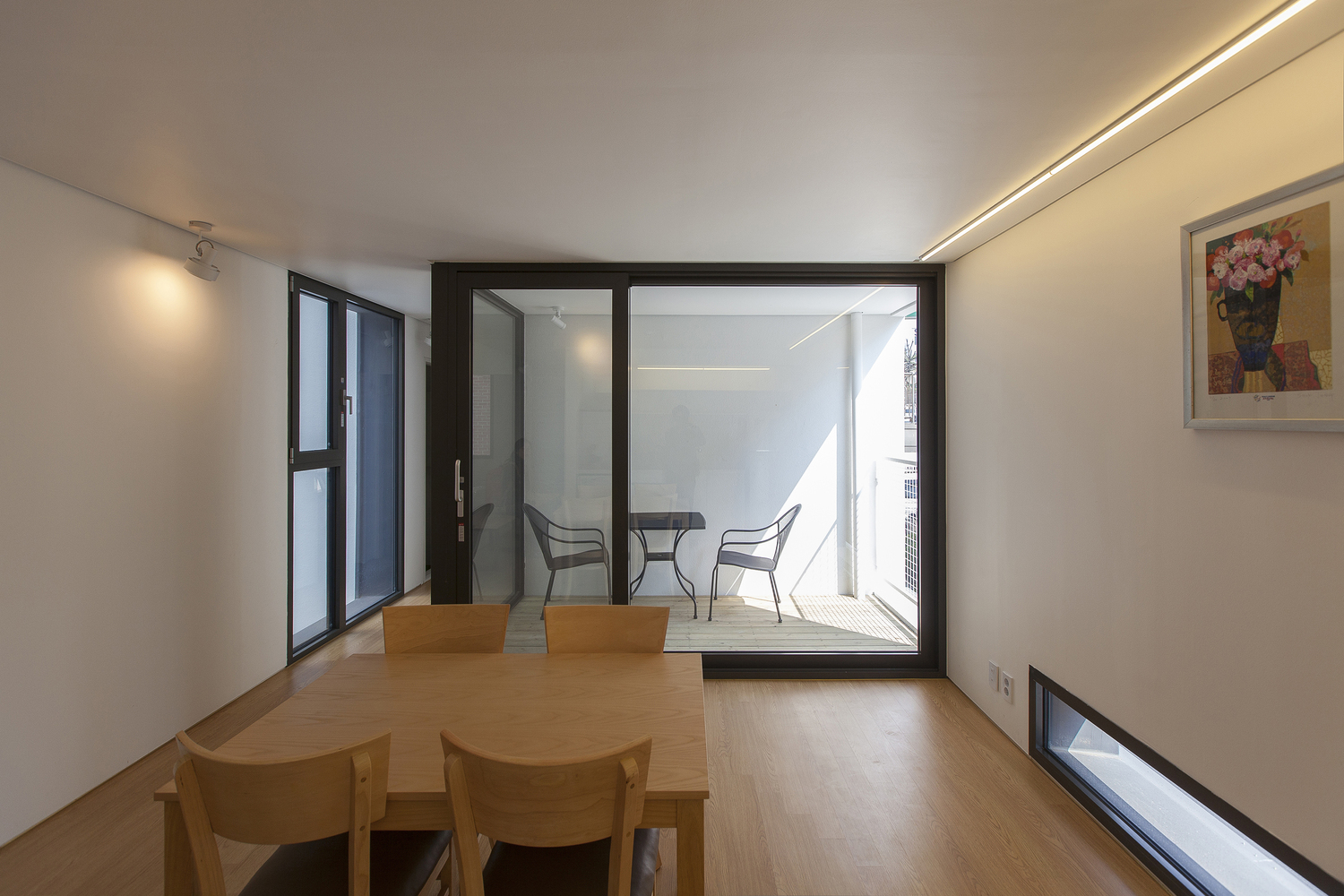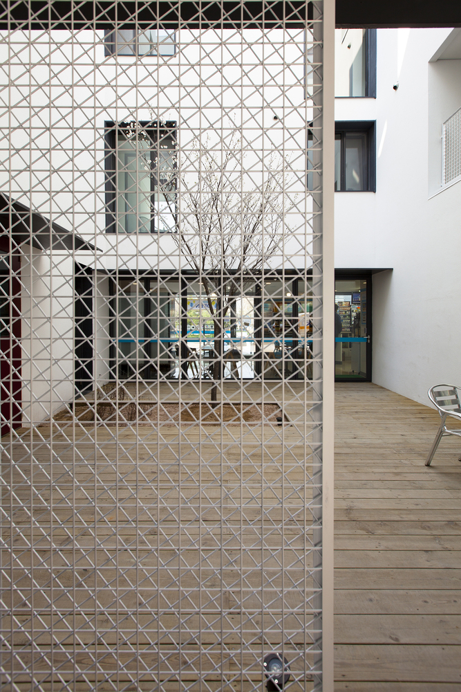 One large sized ‘Gap’ is a courtyard - a sharing open space through easily accessible pilotis. The front and rear façade get advantage of air ventilation and natural sunlight from the south through ‘the Gap’. The courtyard is originally inspired by a low wooden bench with deep, green shade under Korean zelkova where villagers used to gather. There also become a sense of place where people who walk the ally like to stop by and sit to break and talk each other.
