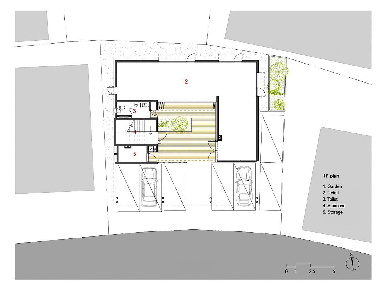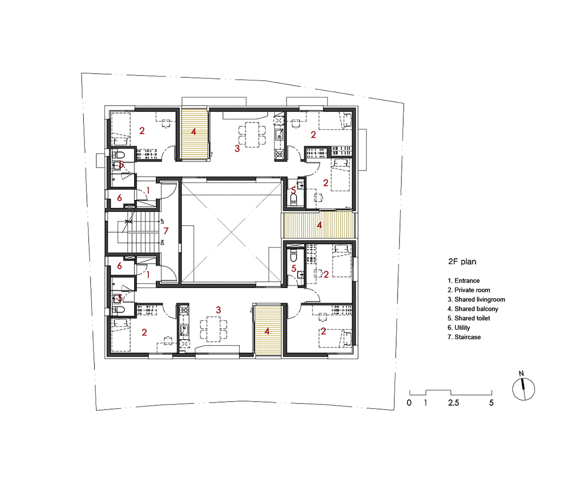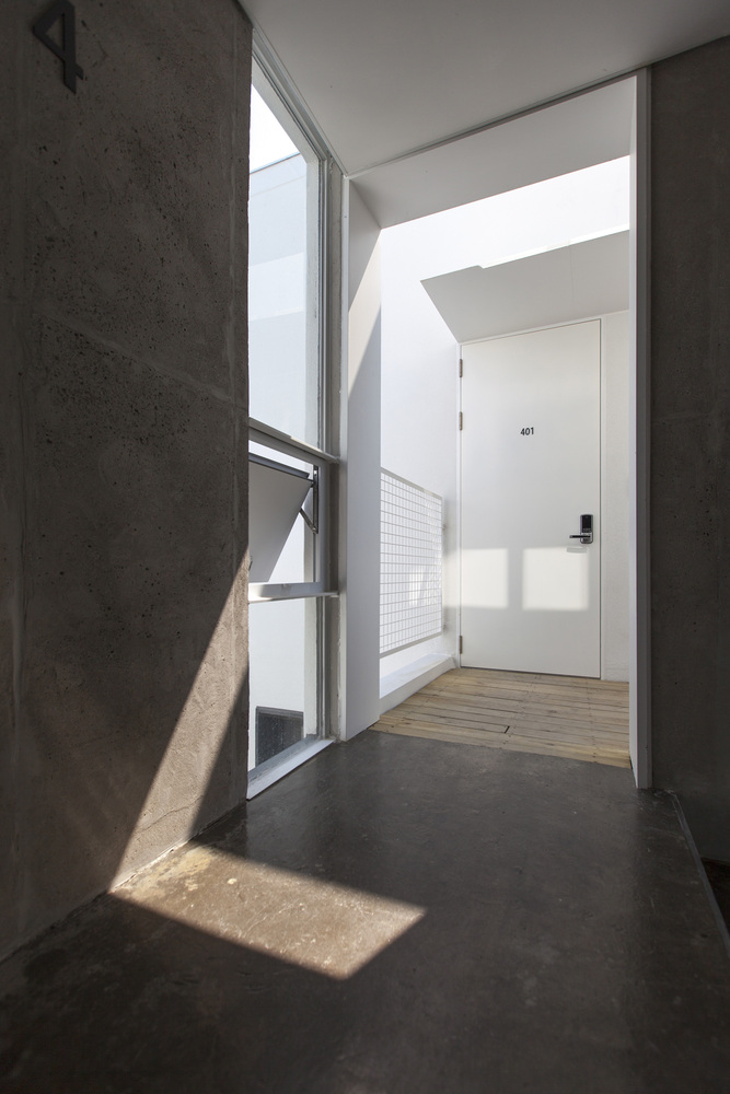 The smaller scaled ‘Gap’ represents the balconies of the six units. Designed to open up to the outdoor & courtyard, residents can feel nature and communicate with the neighbors. Typically, balconies placed in front of the house have caused serious privacy issues because of very close distance from neighbor. To prevent this, balconies are designed to be more linear in shape and are placed deep inside each of the units to keep onlookers from outside from looking in.