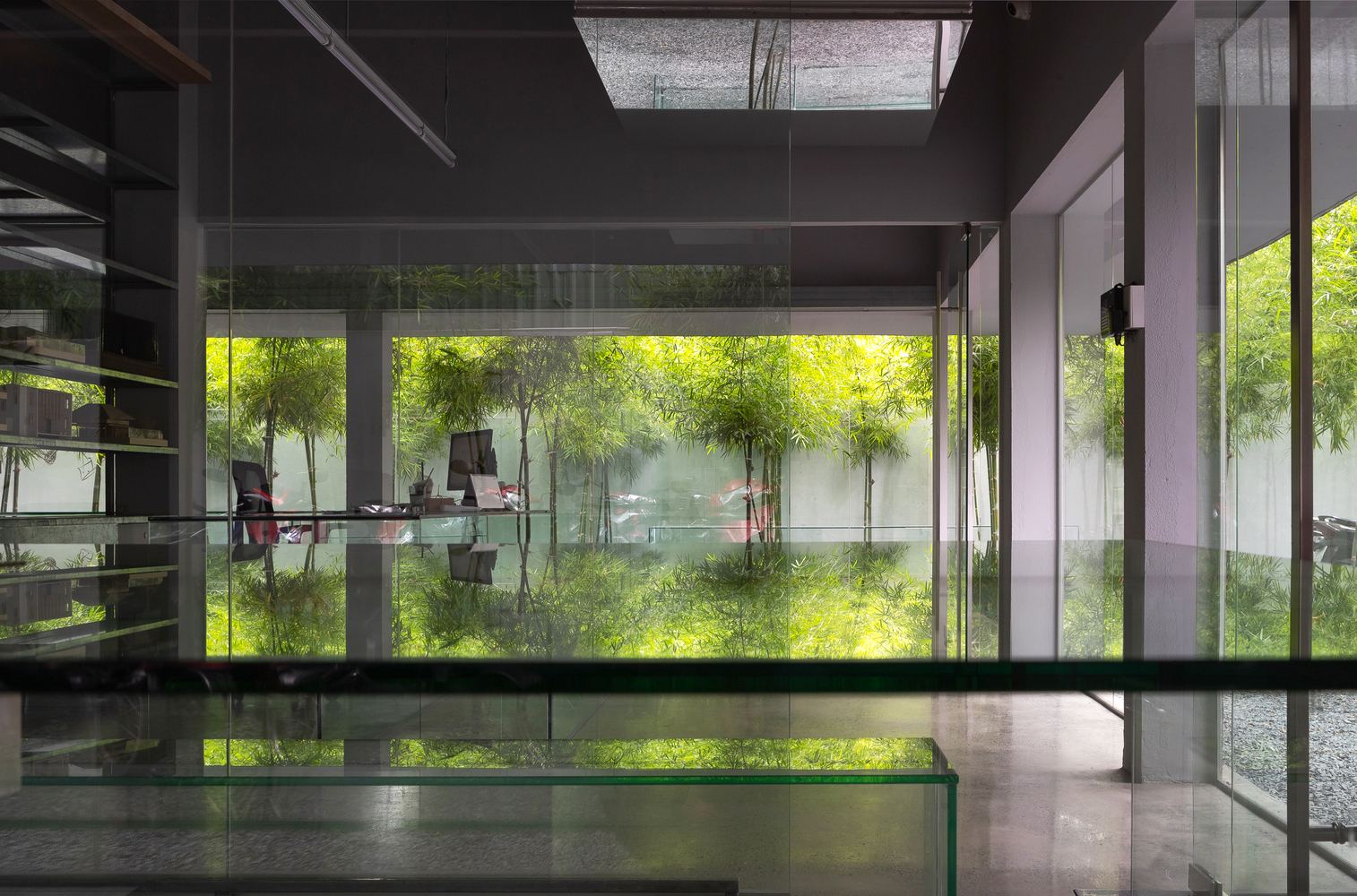 2층 사무공간은 건축가들이 항상 녹지를 바라보며 사생활을 즐길수 있도록 계획하였다. 작업공간의 창의성과 효율성을 고려하여 대형 테이블과 수직 오픈 라이브러리를 우선시되어 기능적으로 디자인되었고. 각 자의 작업 공간에서 적절한 높이로 설계된 개구부에서 공원전체가 보이도록 작업공간을 구성 확장했다. 개구부와 결합된 캔틸레버 창호는 차양 뿐만아니라 건축가들의 작업공간으로 활용되며 도면, 스케치, 그림 ,기사 또는 건축가에게 영감을 주는 모든 것을 부착가능한 개인 보드 공간으로 사용된다.