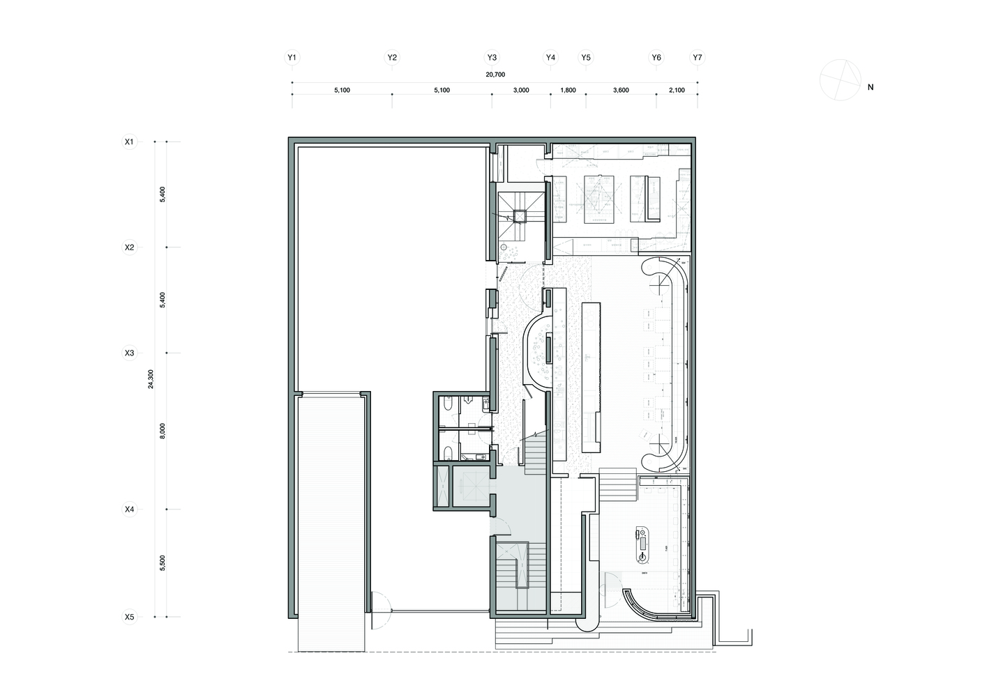Composition of Space - The key to the design is to combine the gardens hidden in two existing buildings into one, to secure the widest area in the whole space, and to provide a medium. The scattered six spaces formed a relationship through this garden to perform each function. 7 spaces divided in the order of cave, cube, slope, shade, garden, hall, and sala, have different roles and heights and provide various sequences.